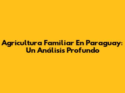 Agricultura Familiar En Paraguay: Un Análisis Profundo