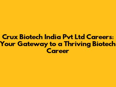 Crux Biotech India: Your Next Career Move?