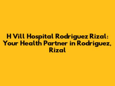 Hey guys! Looking for a reliable hospital in Rodriguez, Rizal? Let's dive into what H Vill Hospital has to offer. Knowing your local healthcare options is super important, and H Vill Hospital aims to be a key player in providing quality medical services to the community. In this article, we’ll explore everything you need to know about H Vill Hospital, from its services and facilities to its location and contact details. So, let’s get started!