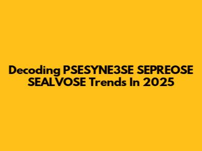 Decoding PSESYNE3SE SEPREOSE SEALVOSE Trends In 2025